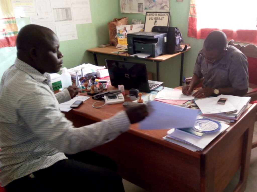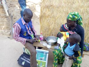 A WESDE Multipurpose Community Health Worker (MCW) working in a household in the Meri Health District.